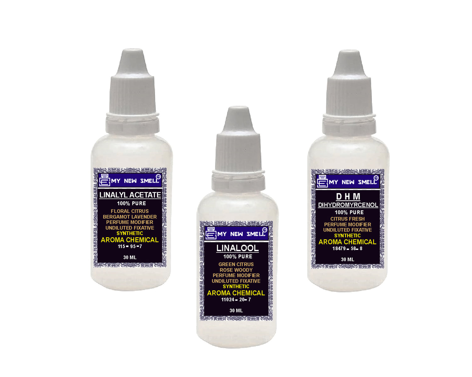 Set of 3 (30 ml each), extremely important material for perfume making. They enhance the power of your blend as modifier; make it stay longer as fixative and blends well in your blend as blender.